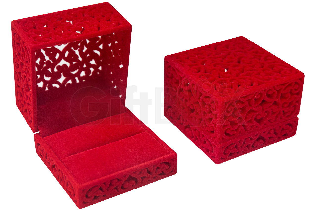 Футляр флокированный красный под кольцо 7.3*7.3*5.3 см