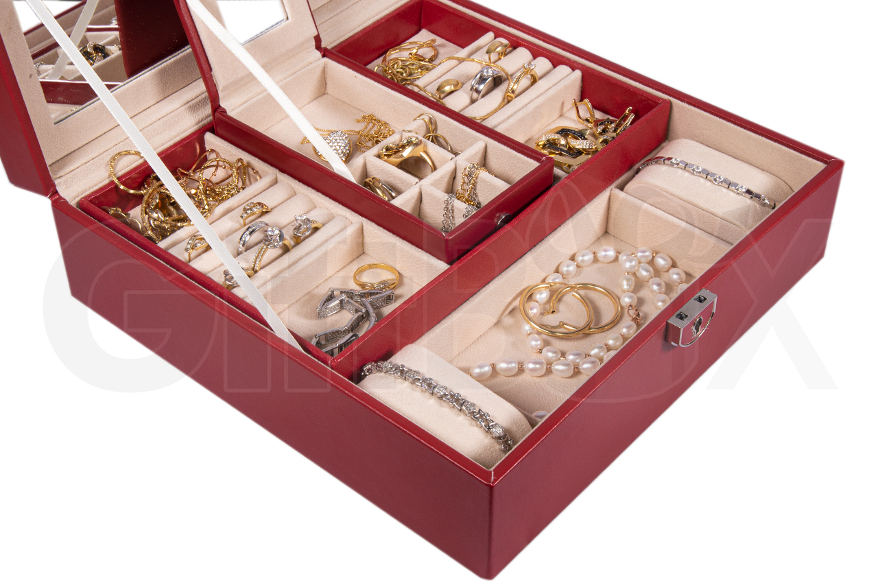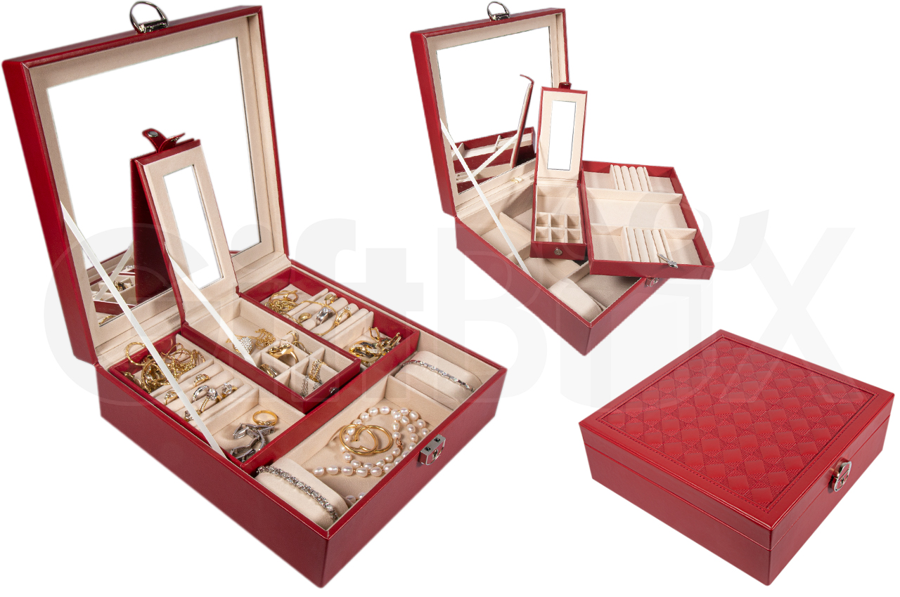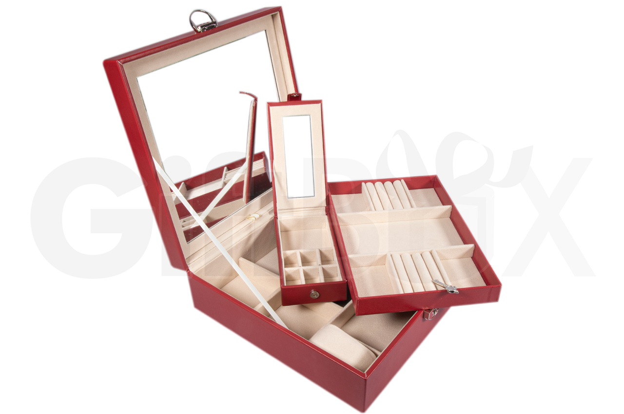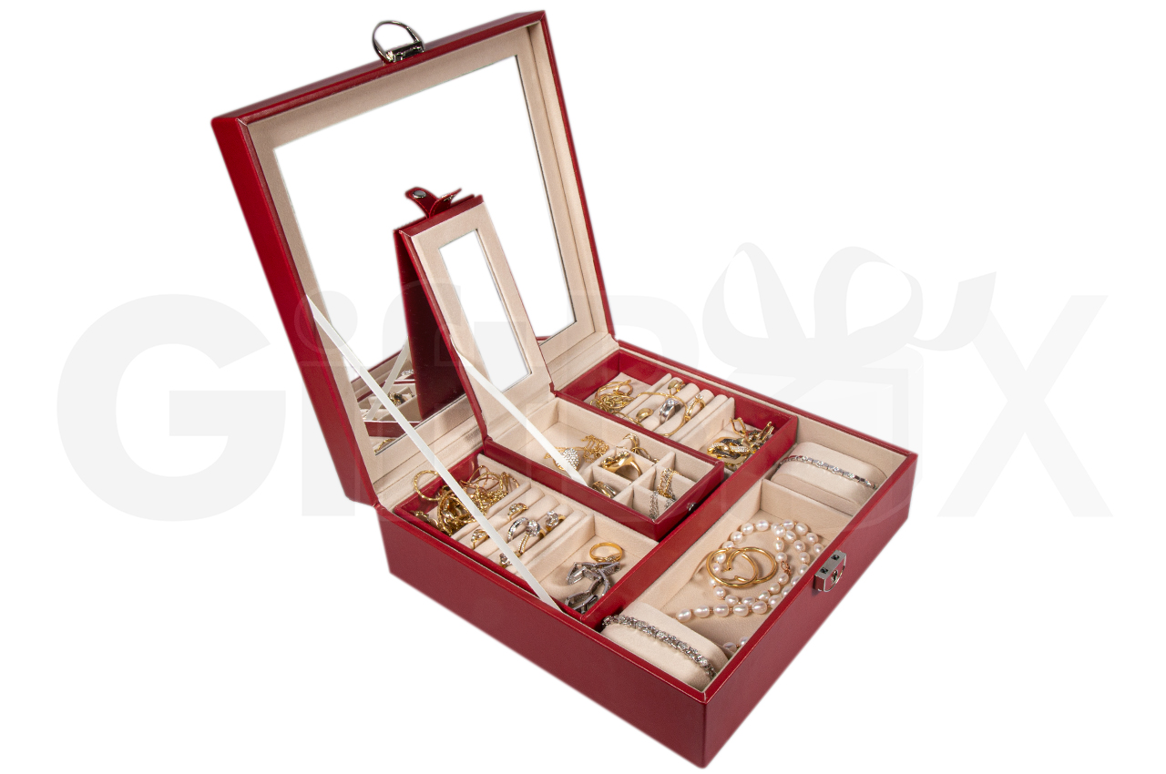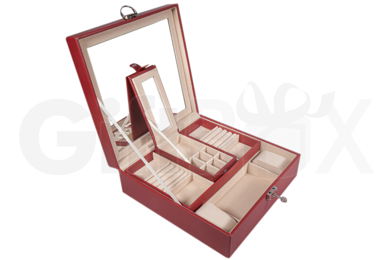 • Шкатулка  для  ювелирных украшений, часов и бижутерии  с зеркалом,  закрывается на ключ